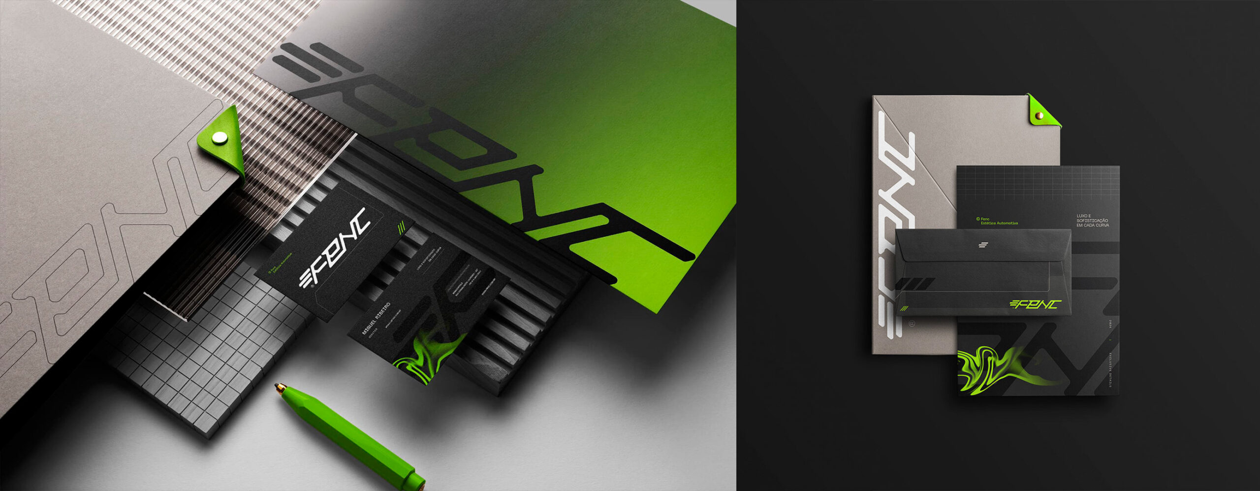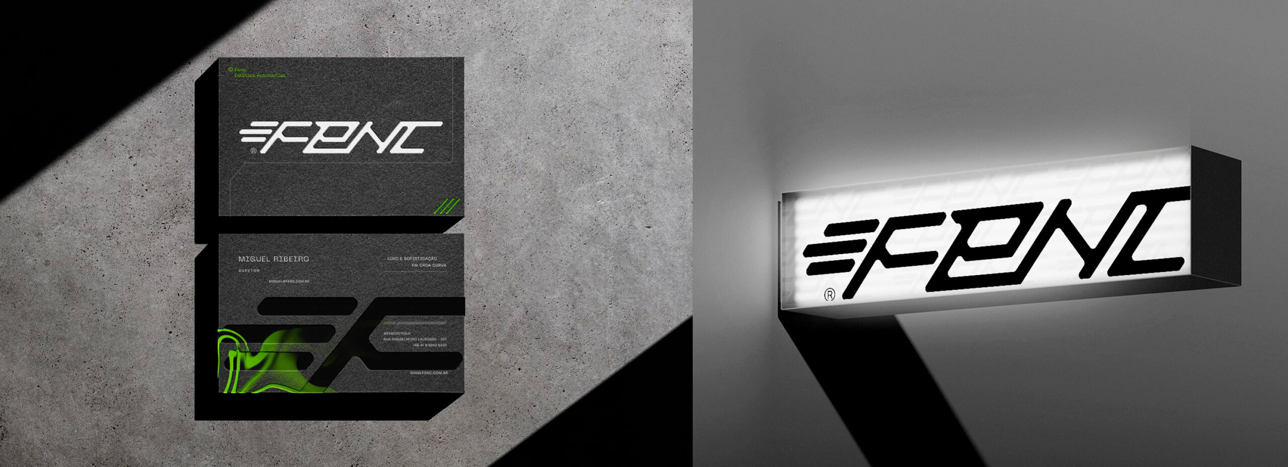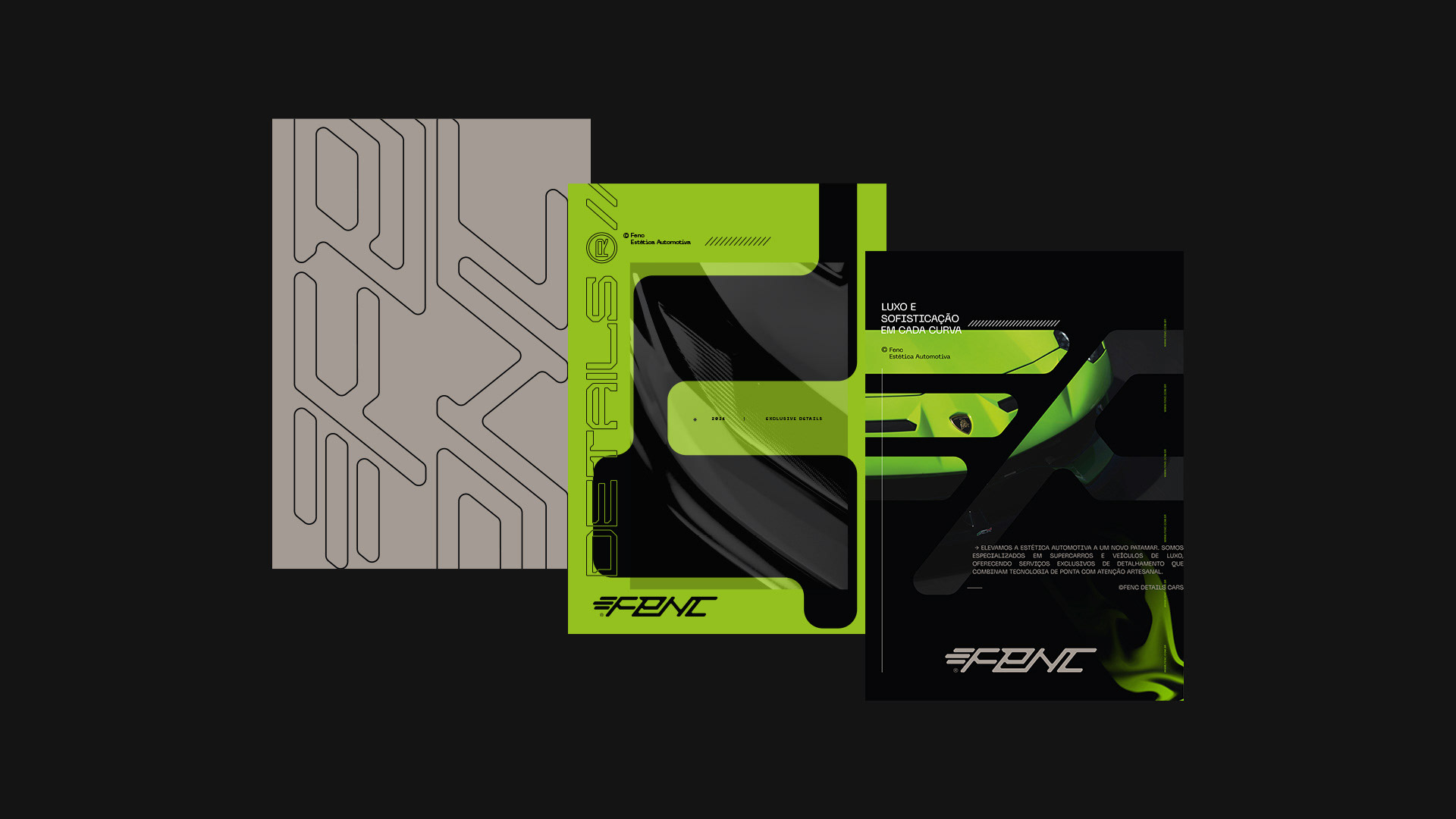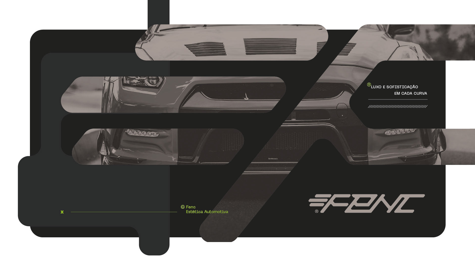 Fenc é uma empresa especializada em estética automotiva de alto padrão, com foco em veículos de luxo. Seu trabalho é pautado no renomado conceito de detailing, que realça cada detalhe do automóvel, conferindo brilho, sofisticação e um aspecto impecável, como se o veículo tivesse acabado de sair da fábrica. A marca Fenc é um reflexo da busca incessante pela perfeição nos mínimos detalhes, voltada para um público exigente e atento à excelência. A identidade visual foi cuidadosamente desenvolvida para dialogar com o universo automobilístico, incorporando elementos modernos e tecnológicos que traduzem inovação, precisão e exclusividade.