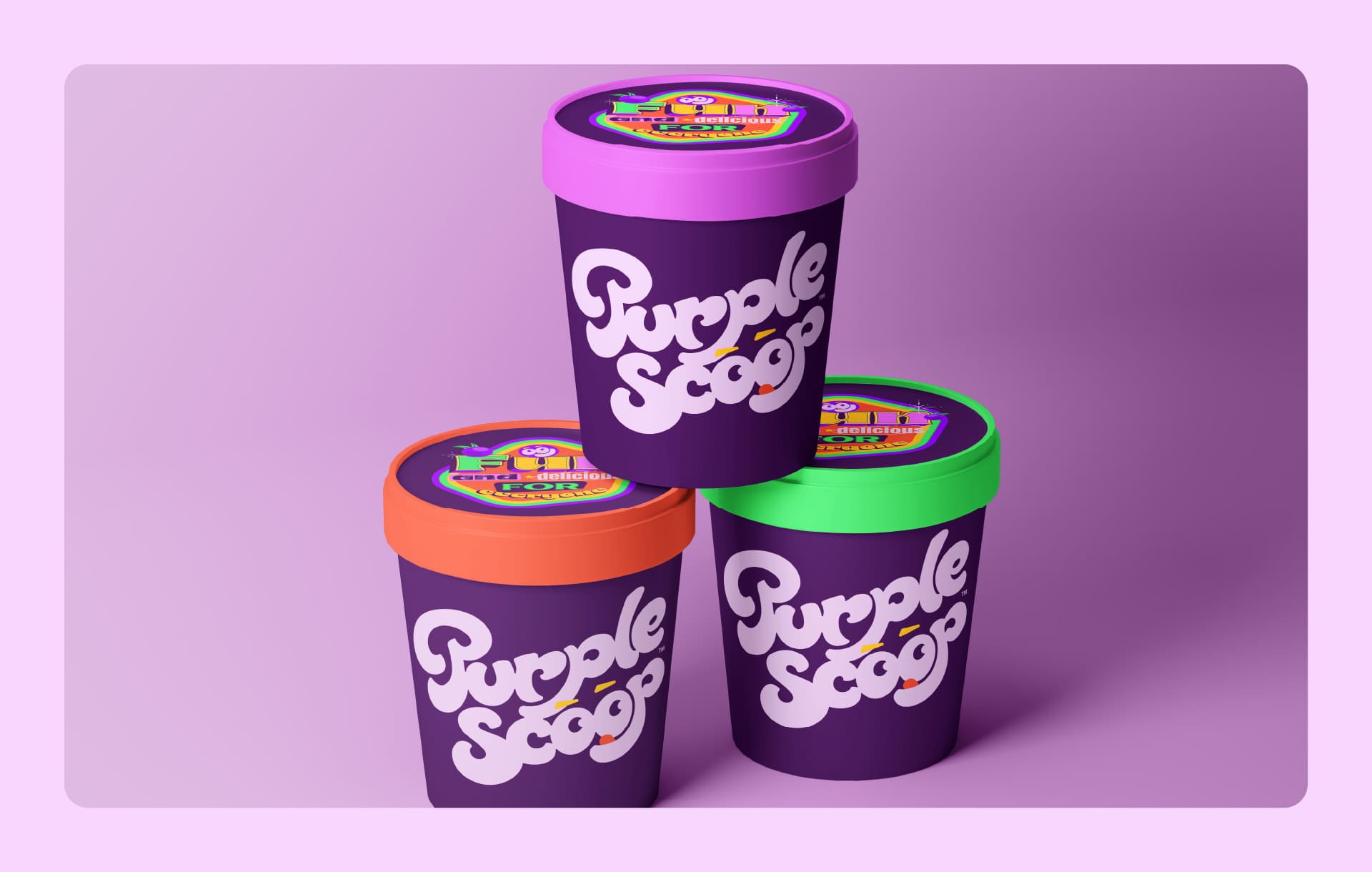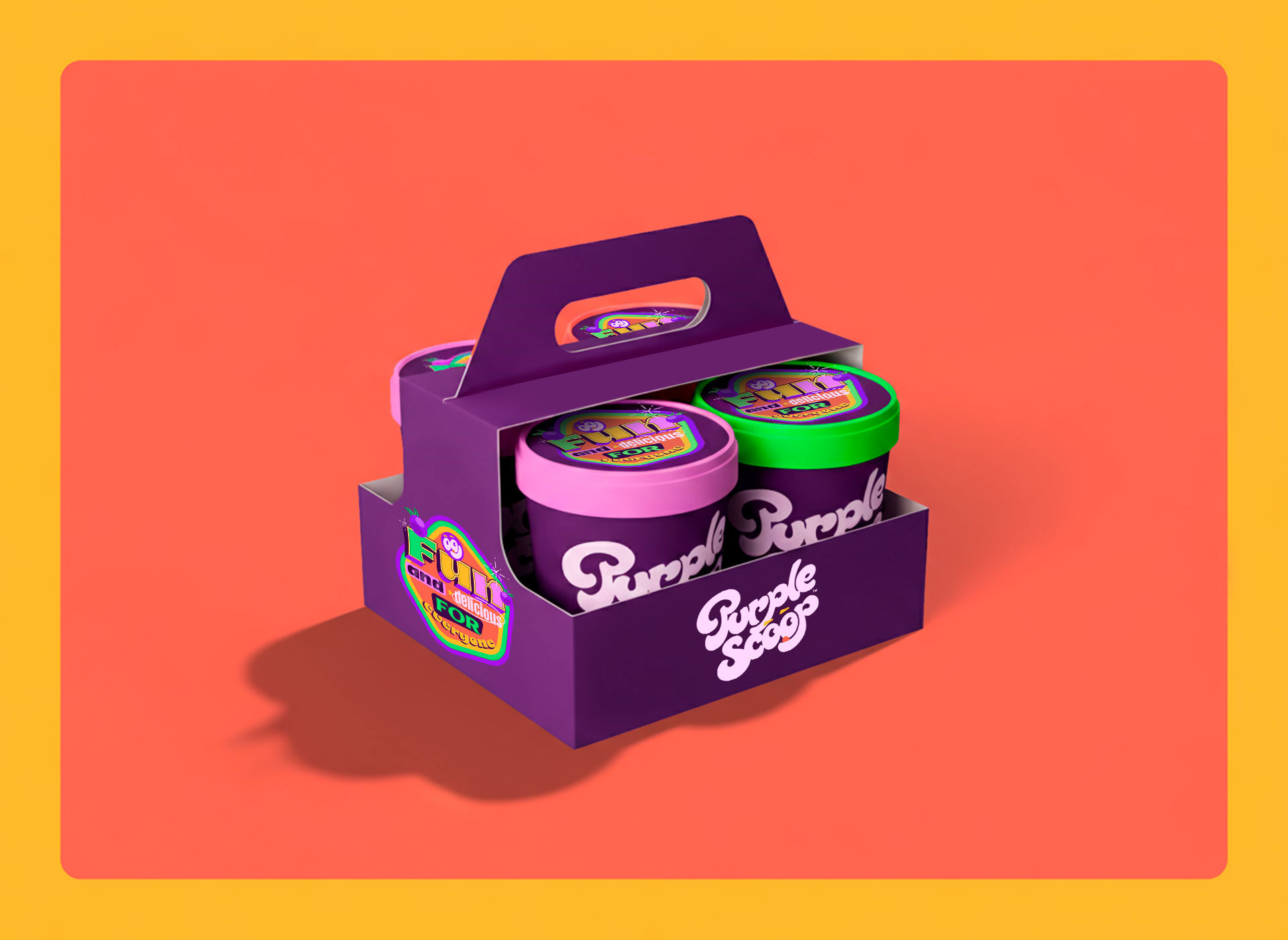 Desenvolvi toda a identidade visual da Purple Scoop, passando pela definição das cores, escolha tipográfica e criação de um personagem que traduz o espírito descontraído, tropical e jovem da marca. O projeto se completa com o design das embalagens exclusivas, que reforçam sua essência e tornam a experiência com o produto ainda mais marcante.